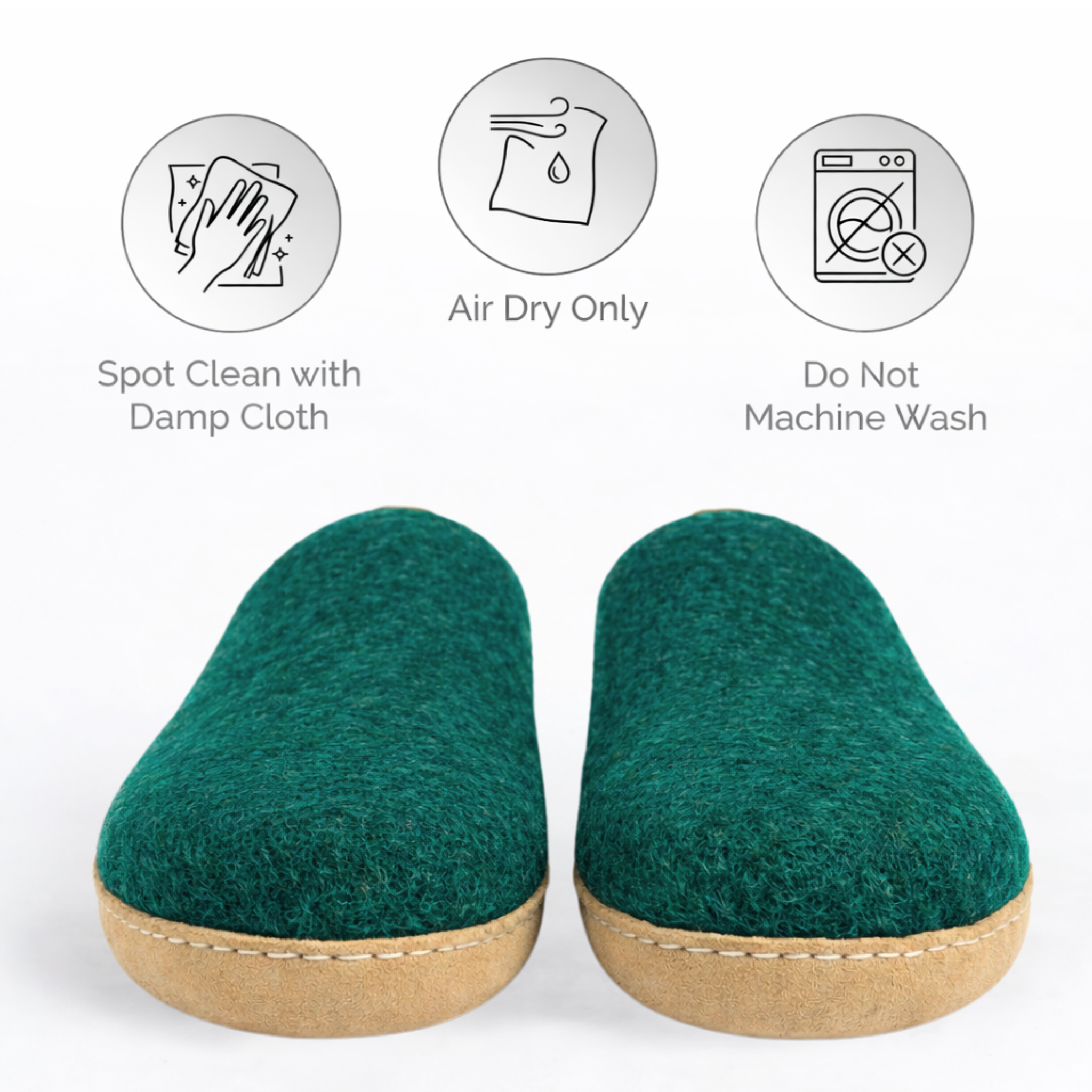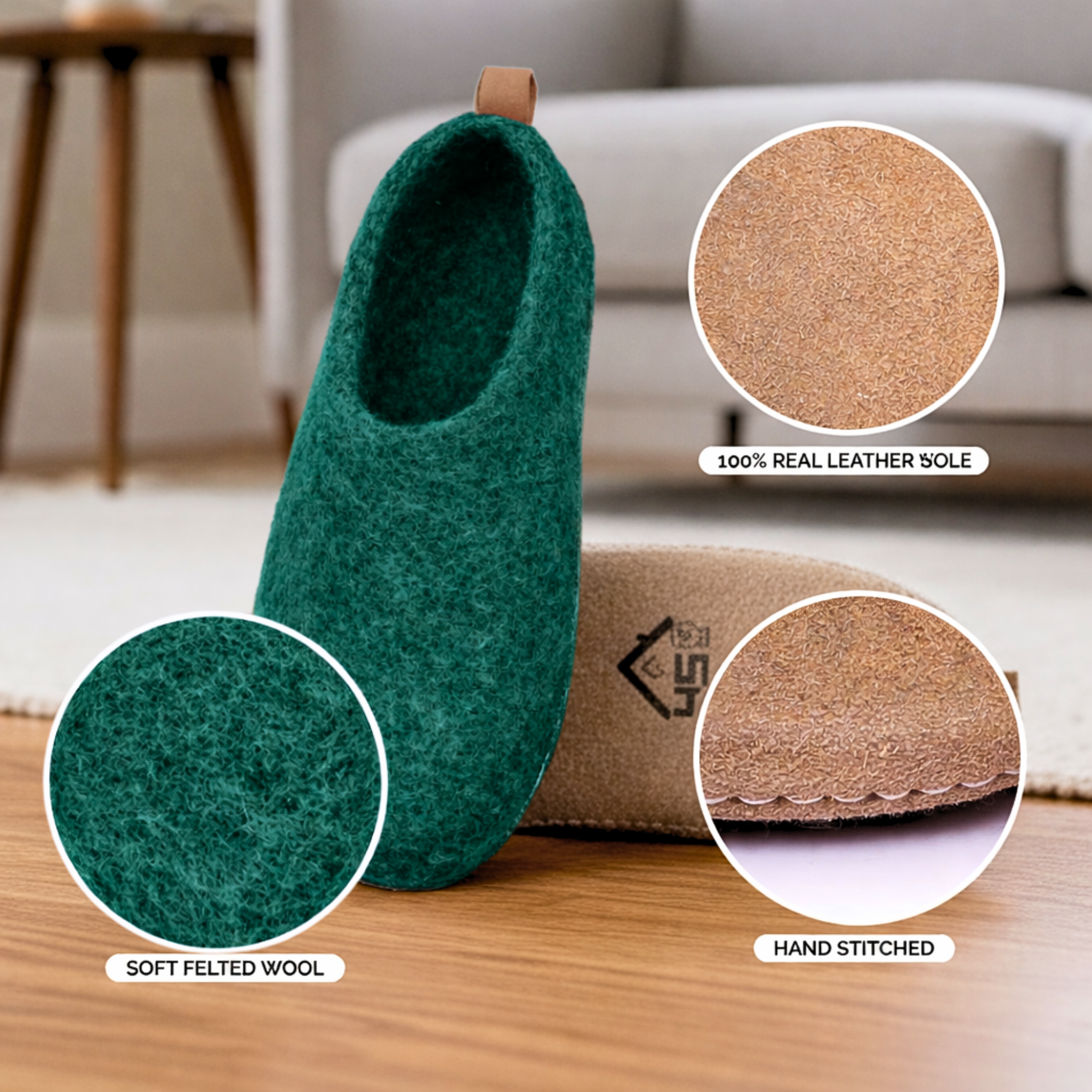 Experience everyday comfort with our handmade wool indoor slippers, crafted for warmth, breathability, and all-day coziness. Made from 100% natural wool and finished with soft genuine leather soles, these slippers are perfect for relaxing at home year-round. Each pair is ethically made in Nepal using traditional felting techniques under fair trade standards.
