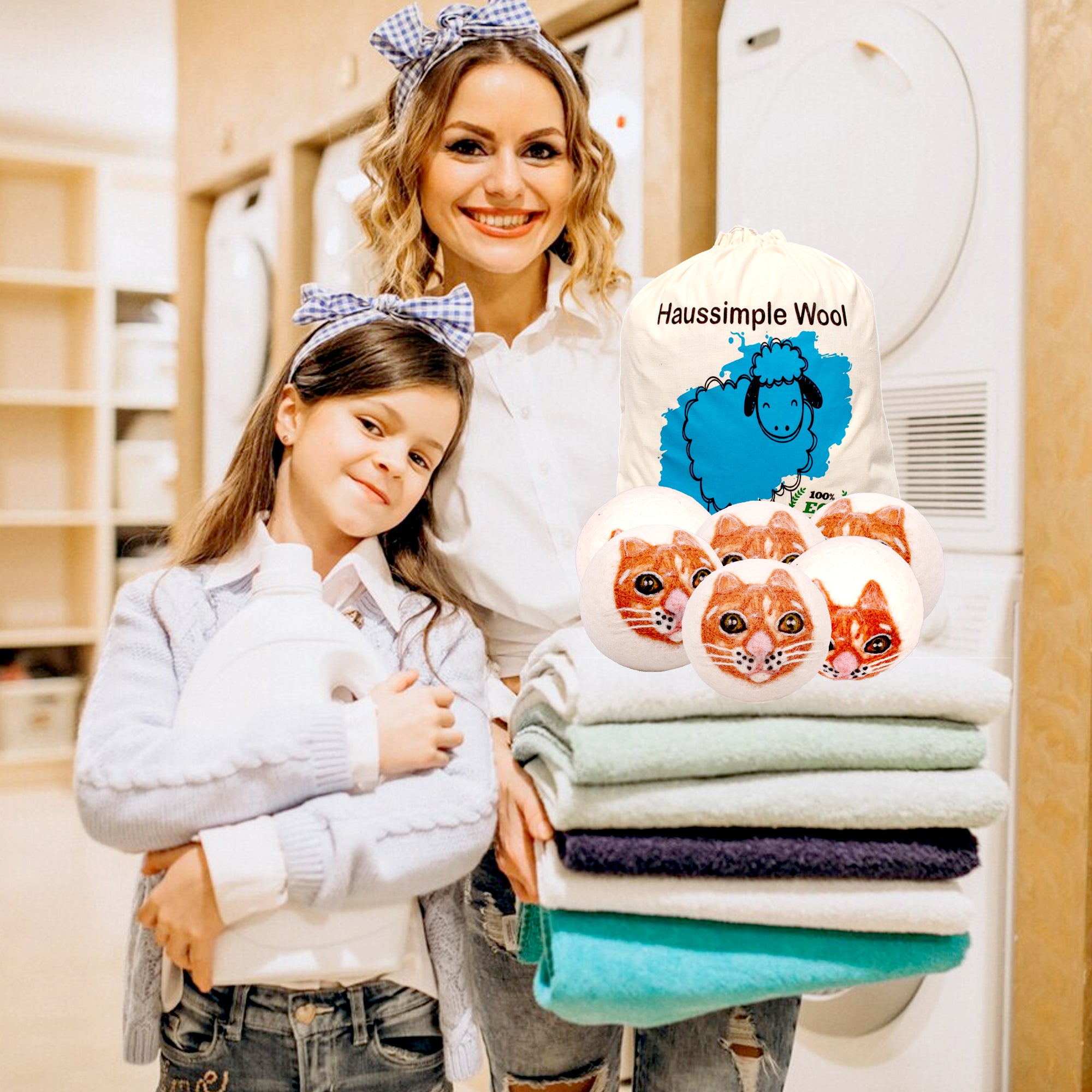 Enjoy soft, fresh clothes with these eco-friendly dryer balls, designed to be as functional as they are fun, thanks to their playful orange cat character!
