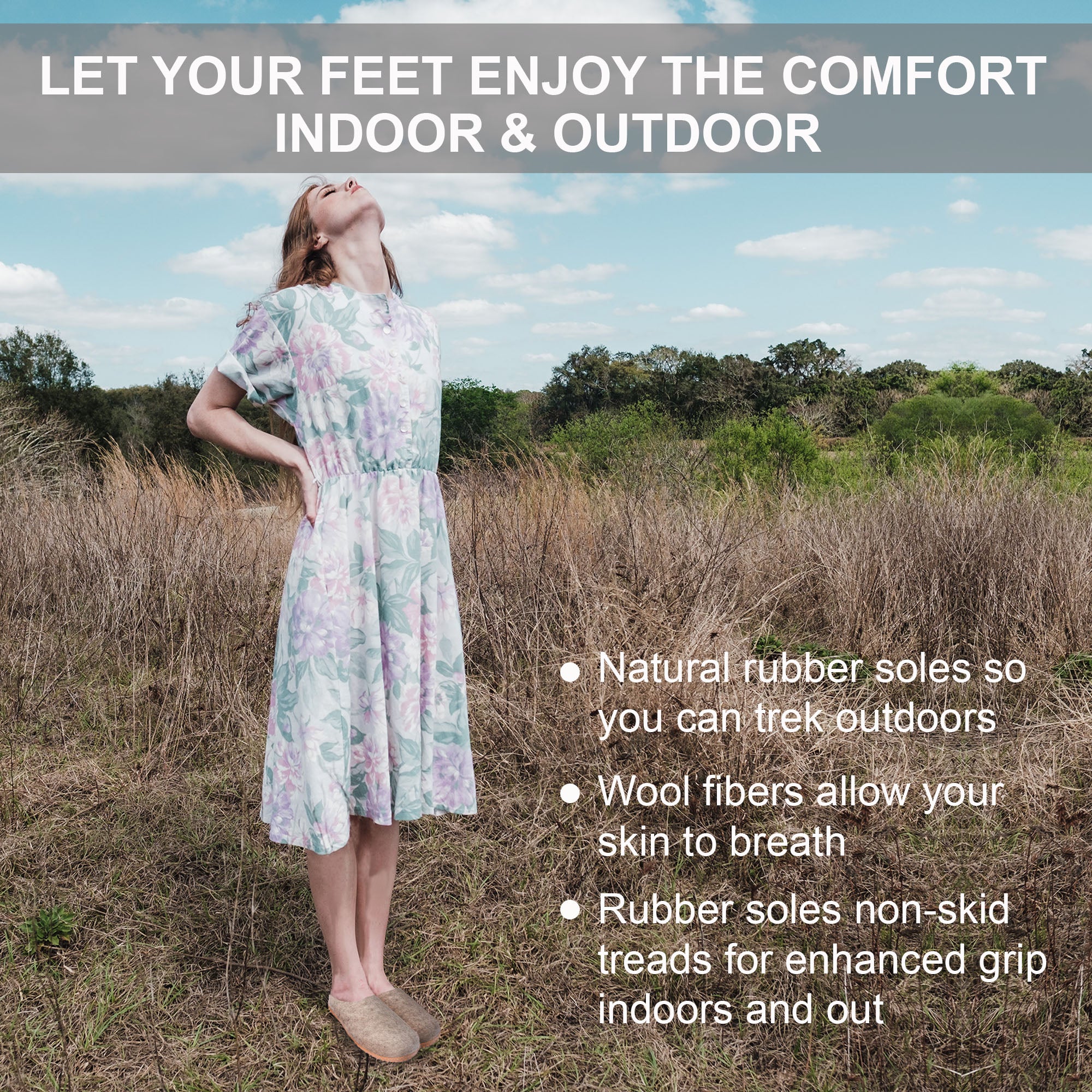 Unisex Wool Slippers for Men and Women Cozy Outdoor Indoor Slip-On Clogs Soft Comfy Shoes for Ladies Mens Organic Felt Merino Sheep Wool Rubber Sole