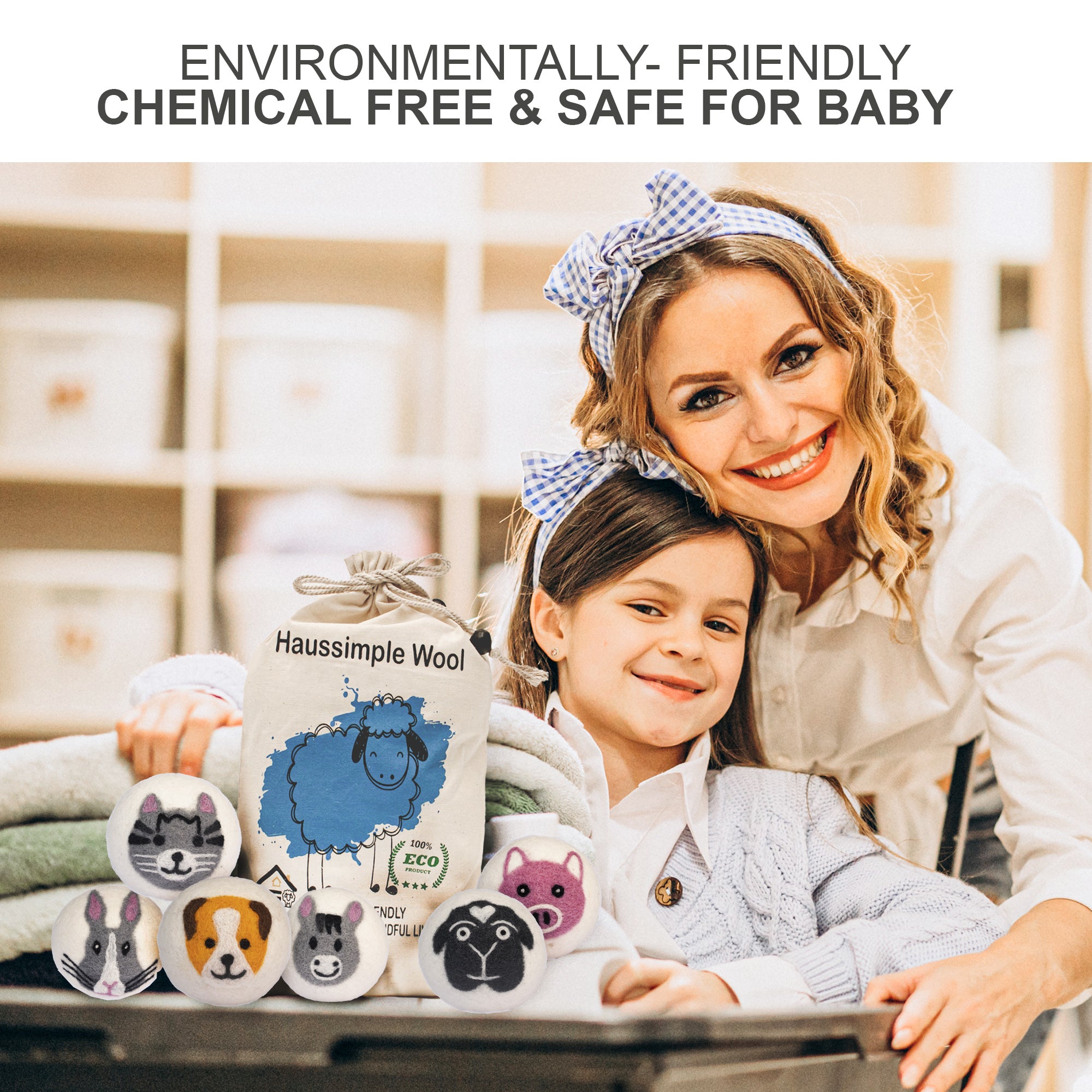 Haussimple Wool Farm Pet Dryer Ball XL 100% Organic New Zealand Sheep's Wool Fabric Softener Balls, 6 Pack