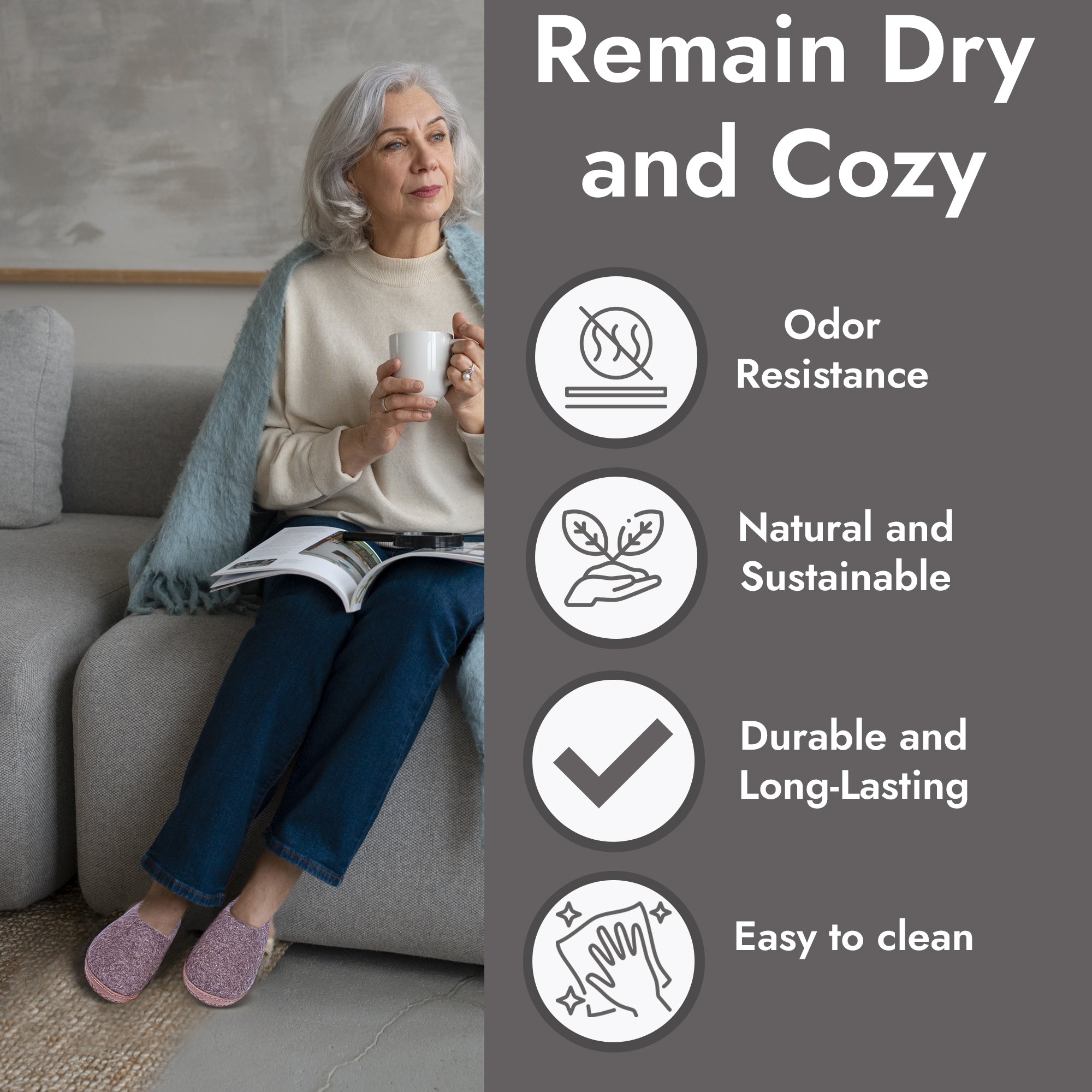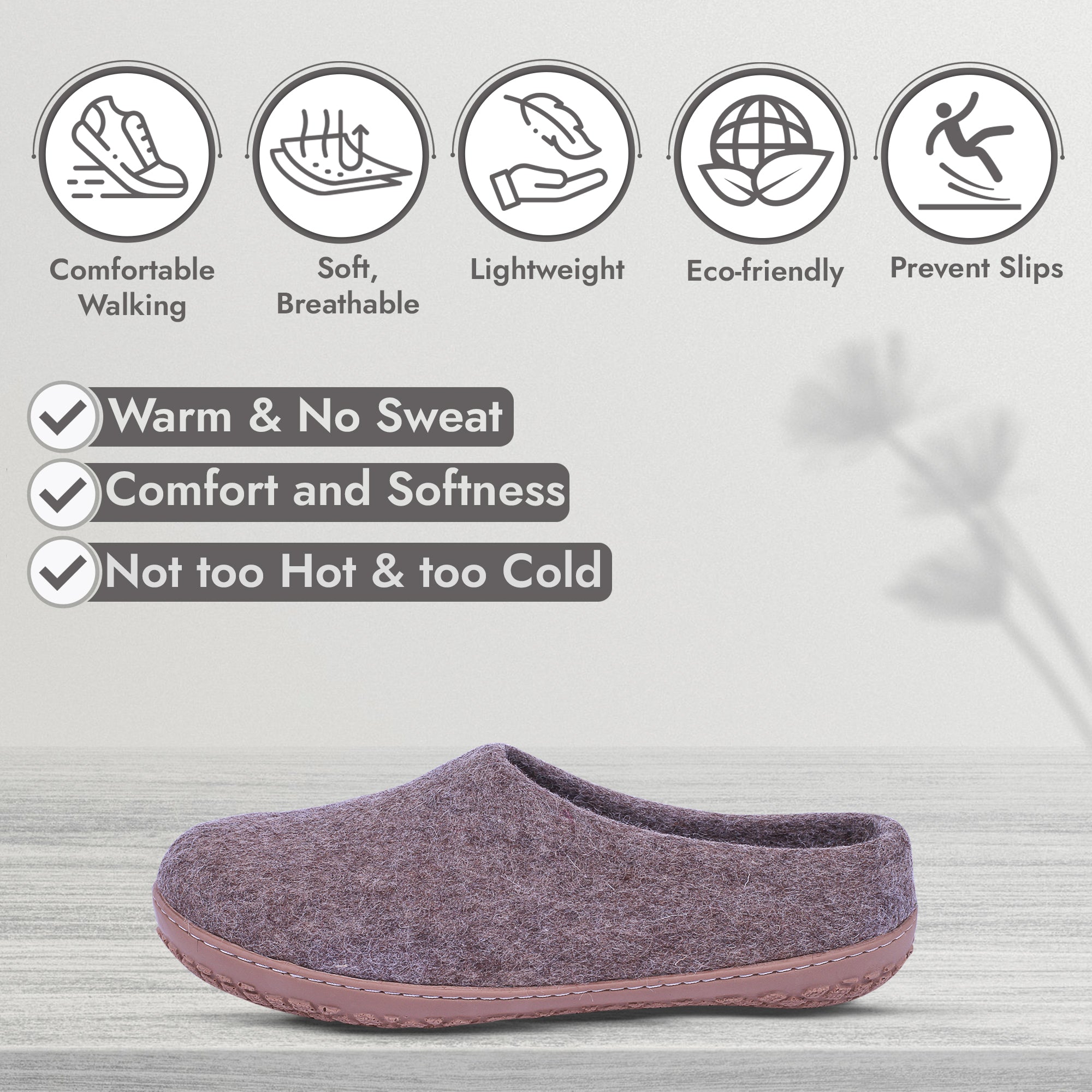 Natural Brown - Unisex Wool Slippers for Men and Women Cozy Outdoor Indoor Slip-On Clogs Soft Comfy Shoes for Ladies Mens Organic Felt Merino Sheep Wool Rubber Sole